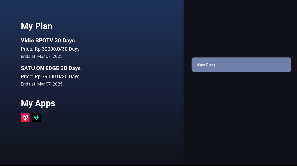 - Setelah berhasil membuat akun/profil baru, Anda dapat memilih Paket SATU ON EDGE (Vidio dan Vision+) atau SATU ON CORE (Vidio, Vision+, Viu) sebagai paket langganan dasar.